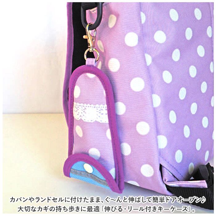 ・カバンやランドセルに付けたまま、ぐ~んと伸ばして簡単ドアオープン♪大切なカギの持ち歩きに最適「伸びる・リール付きキーケース」。