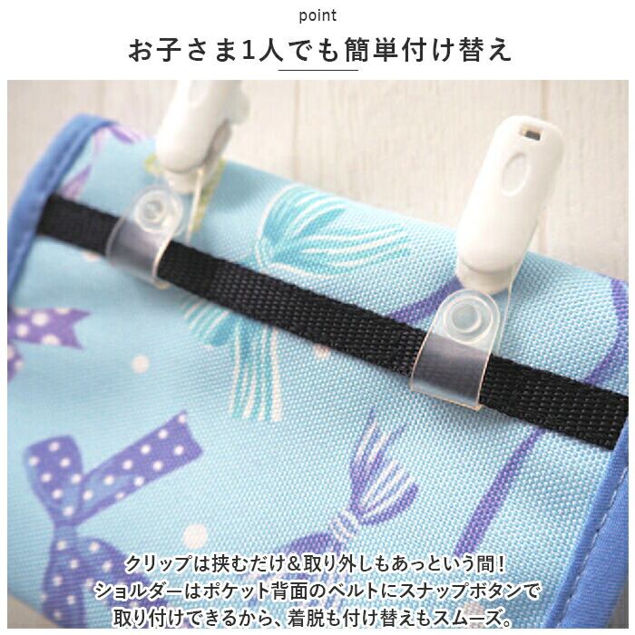 ・ハンカチやティッシュなど、最低限の必需品をラクラク持ち運べるポケット。通学やお出かけにぴったり。
