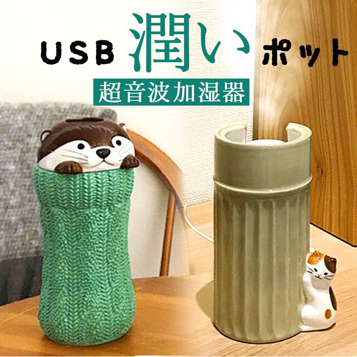 加湿器 超音波 通販 超音波加湿器 スティック型 USB加湿器 usb 陶器 置物 置き物 自動でオフ スチーム アニマル 動物 秋 冬 春 加湿 乾燥 かわいい 可愛い おしゃれ ギフト リビング 寝室 子供部屋 ベッドサイド DECOLE デコレ