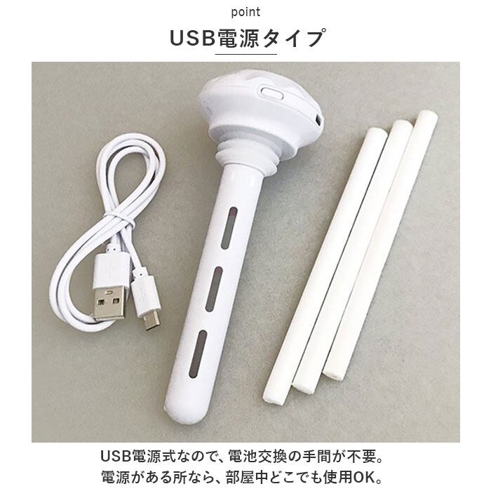 ・USB電源式なので、電池交換の手間が不要。電源がある所なら、部屋中どこでも使用OK。