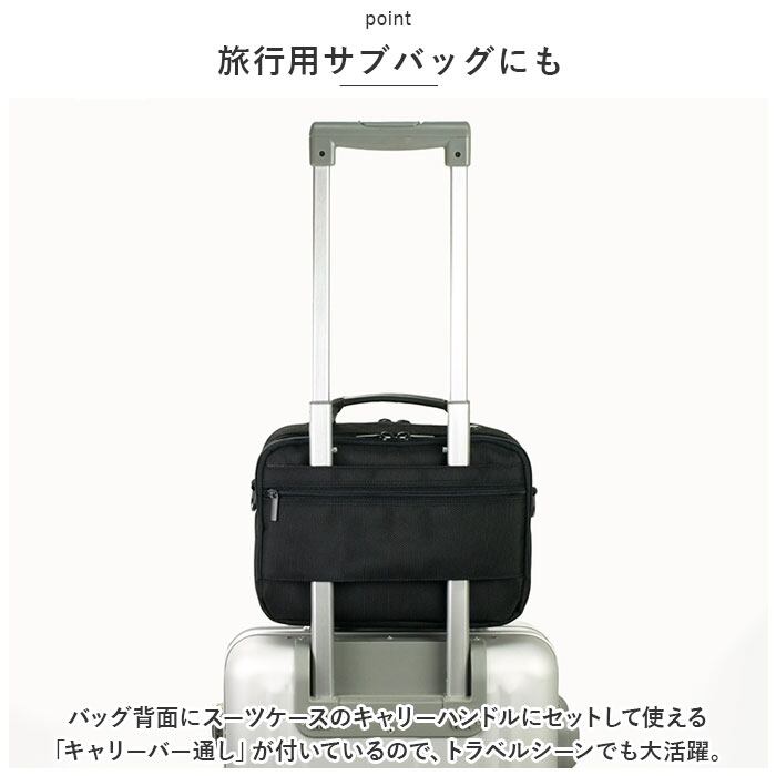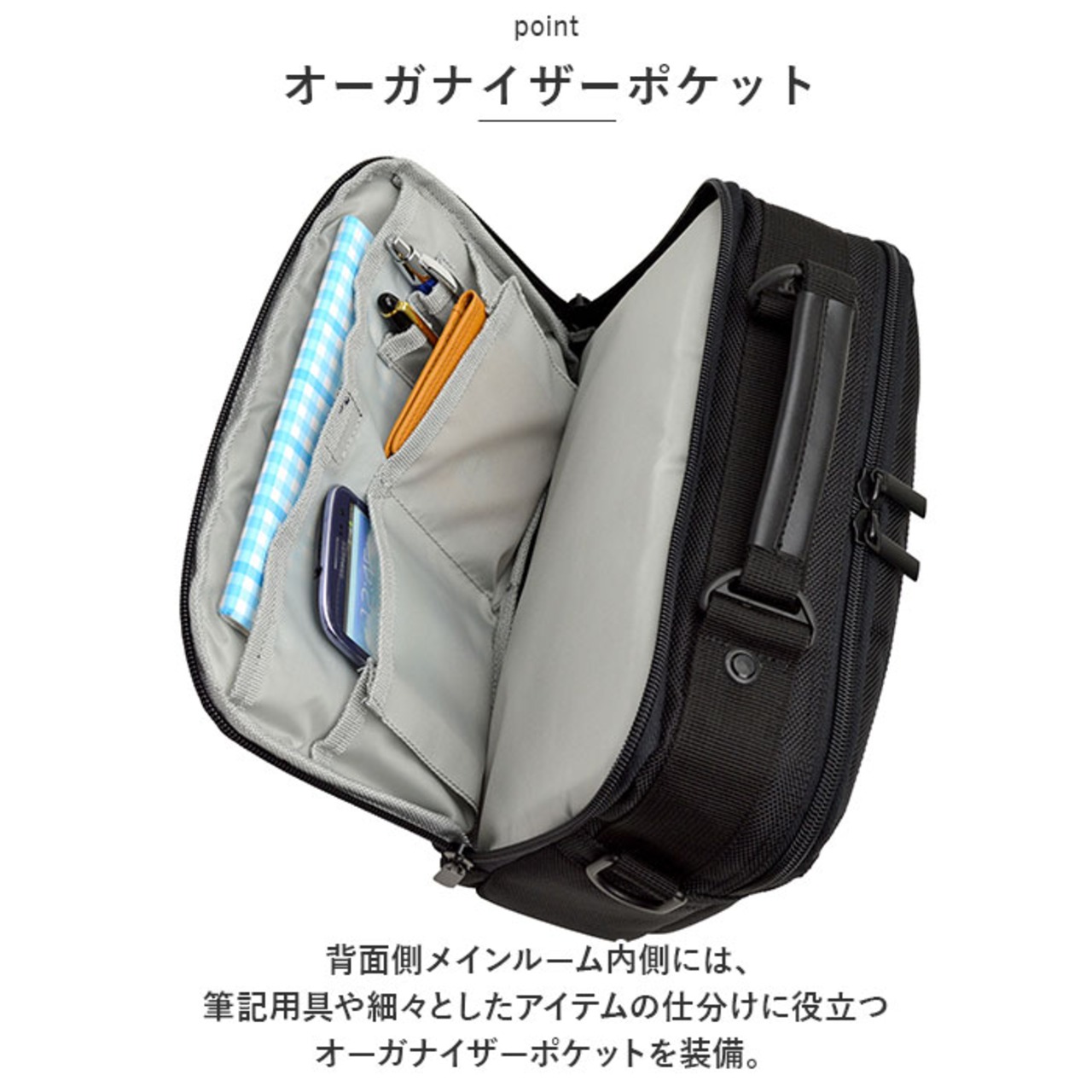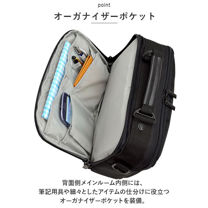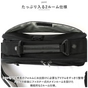 ・バッグの生地も付属パーツも全てブラックで統一。スーツにもカジュアルスタイルにもフィットする大人シックな仕上がりが魅力。