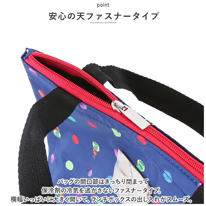 ・バッグの生地内側は、保温・保冷性に優れたアルミ蒸着シート仕上げ。保冷剤や凍らせたペットボトルを一緒に入れておけば、お弁当の時間まで美味しさ長持ち。