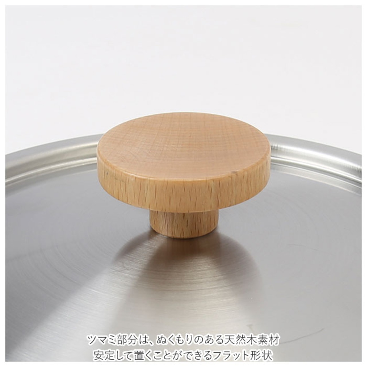 ・長く使えるシンプルなデザイン♪ステンレスと天然木の組み合わせが美しい「aikata 両口ステンレス雪平鍋用蓋 18cm」が発売。