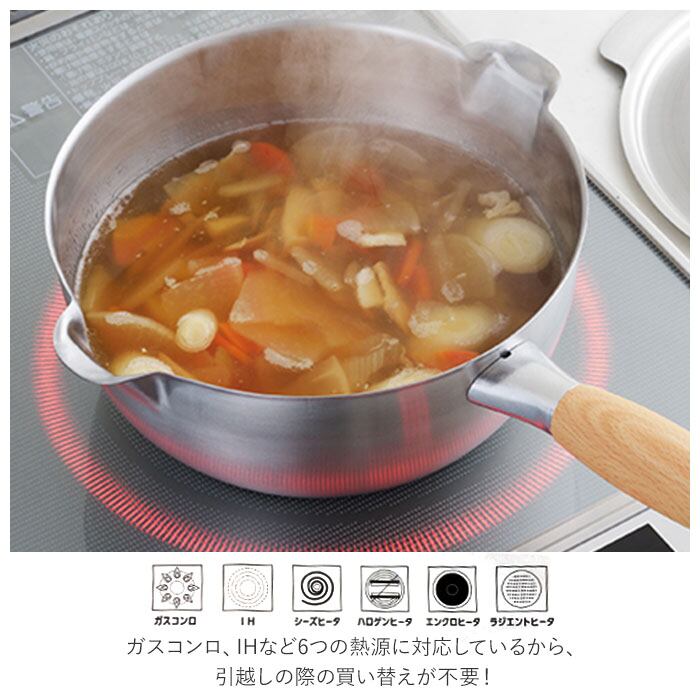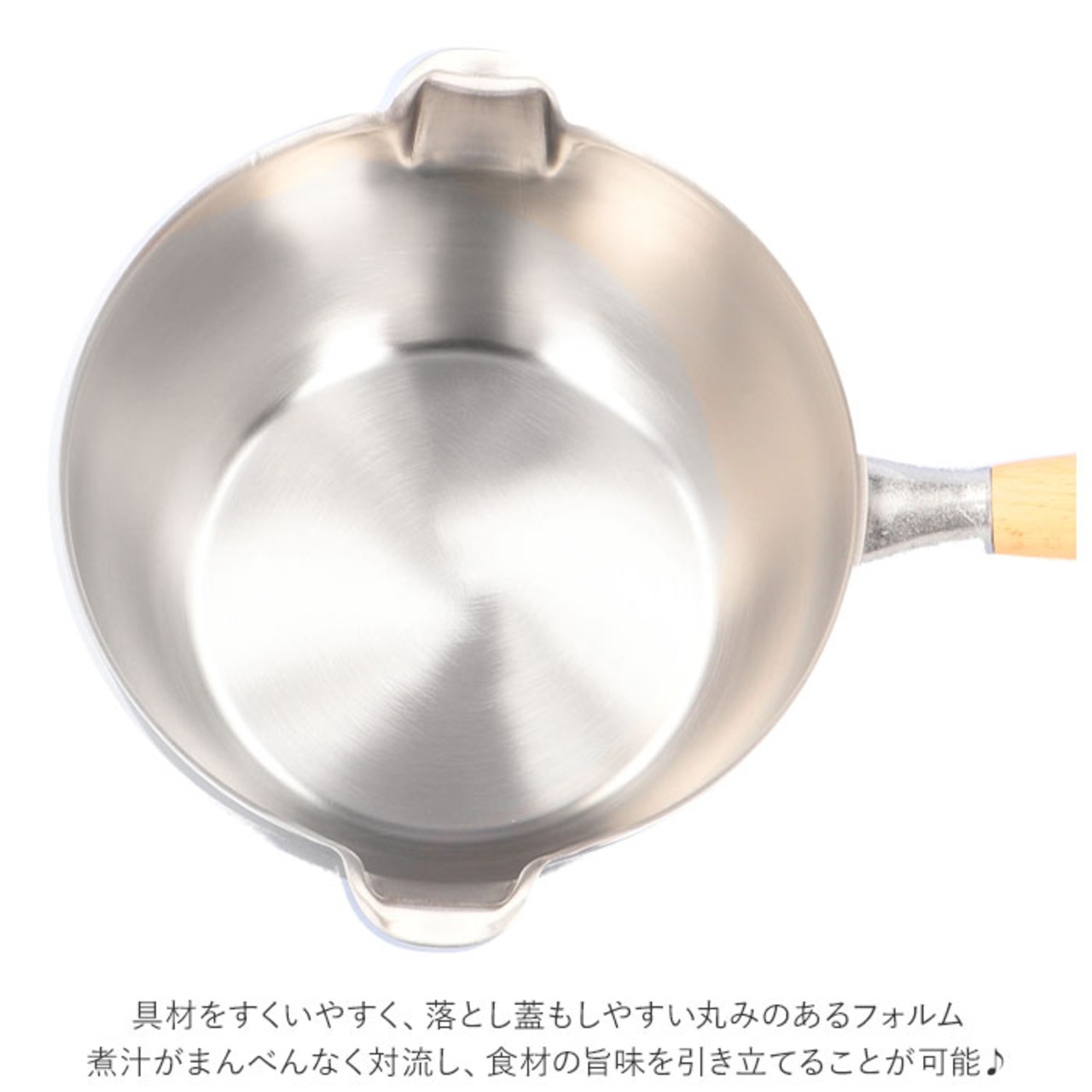 ・長く使えるシンプルなデザイン♪ステンレスと天然木の組み合わせが美しい「両口ステンレス雪平鍋セット 18cm」。