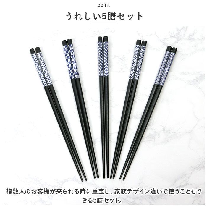 来客箸 5膳セット 通販 お箸 おはし はし 食洗機対応 若狭箸 若狭塗 5本セット おしゃれ お箸セット 木製 藍小紋 23cm 大人 男性 女性 シンプル 和モダン ナチュラル 贈り物 パーティー 和食器 和風 食器 雑貨 カトラリー アオバ