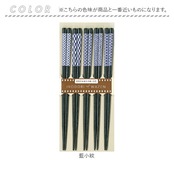 ・天然木の素地に、福井県小浜市で生産される伝統工芸品の漆器「若狭塗」の技法を用いたお箸。表面にポリエステルウレタン塗装を施すことで、傷などが付きにくいのもポイント。