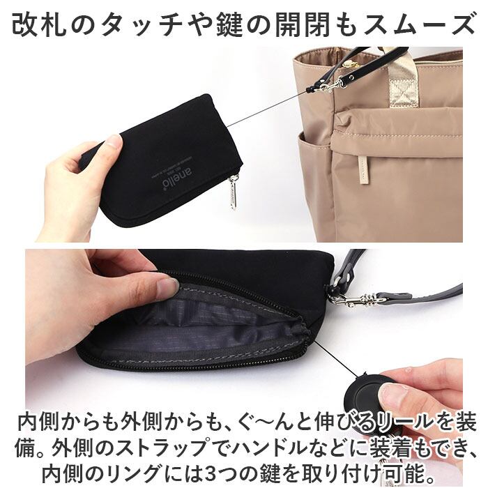 anello アネロ リール パスポーチ AIM0738 通販 リールパスポーチ パスケース ミニパスケース ミニポーチ ポーチ 小物入れ リール付き 撥水 ポケット カジュアル ファスナー 男女兼用 ユニセックス レディース メンズ 通勤 通学
