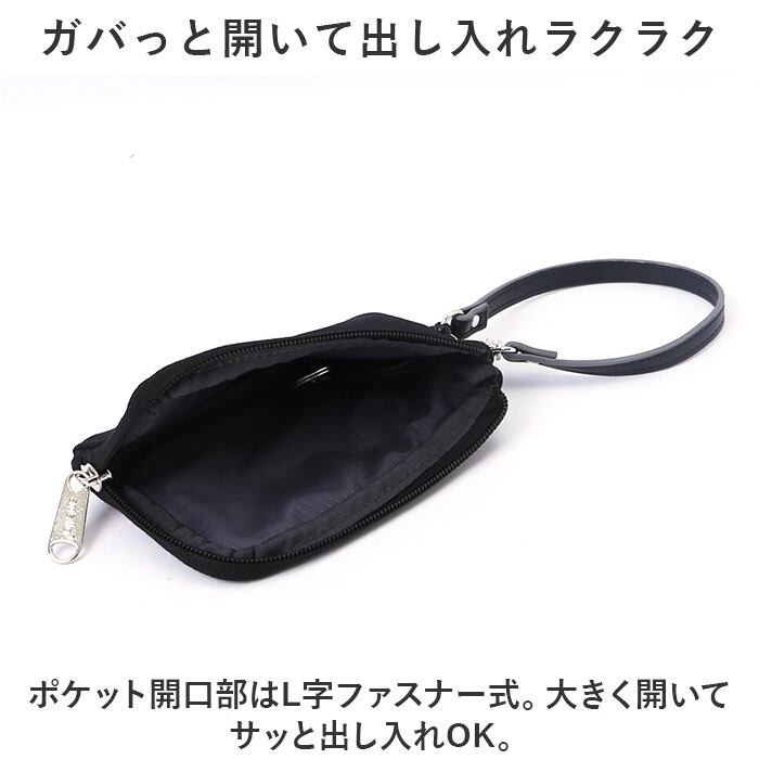 ・ポケット開口部はL字ファスナー式。大きく開いてサッと出し入れOK。