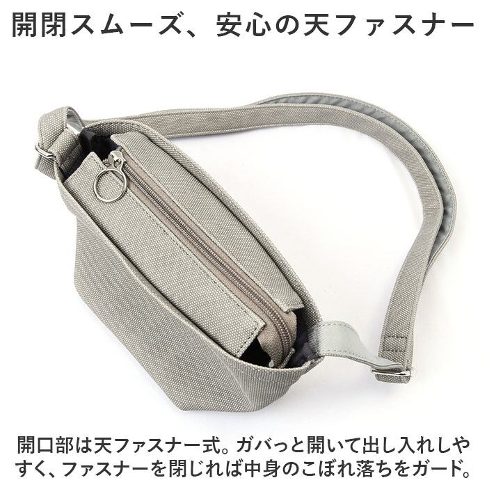 ・開口部は天ファスナー式。ガバっと開いて出し入れしやすく、ファスナーを閉じれば中身のこぼれ落ちをガード。