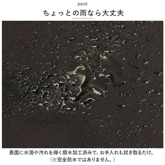 ・表面に水滴や汚れを弾く撥水加工済みで、お手入れも拭き取るだけ。(※完全防水ではありません。)