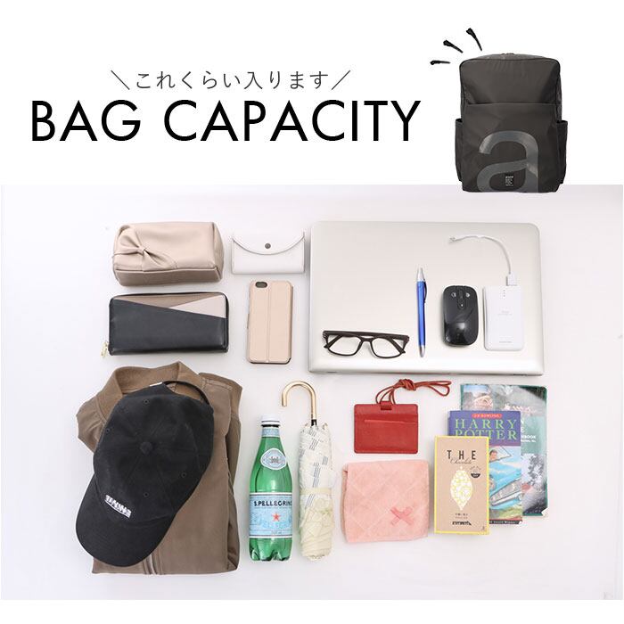 ・お出かけの荷物をすっきり収納できる、容量約12Lサイズ。適度なマチ設計で、人混みでも邪魔になりにくい!