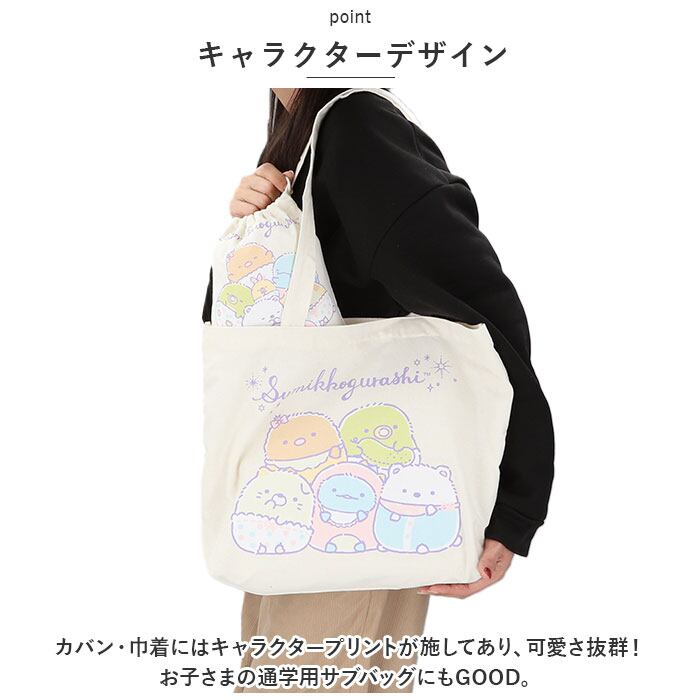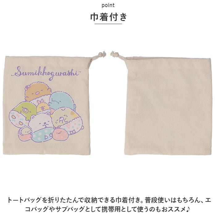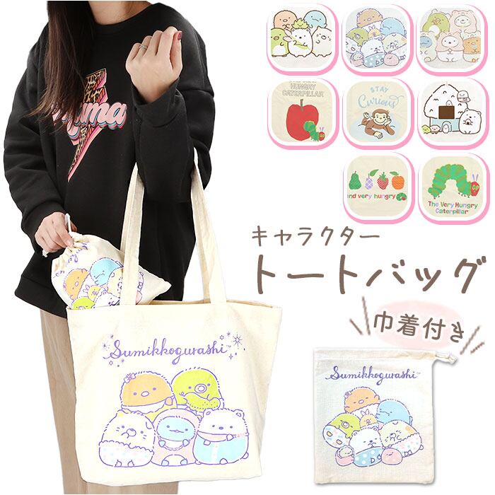 キャラクター トートバッグ すみっコぐらし 通販 トート 巾着 バック 手提げ かばん カバン きんちゃく ポーチ A4 大きめ ショルダーバッグ エコバッグ 収納 ポーチ付き かわいい マチあり 持ち運び コンパクト 肩かけ レディース 女の子 ギフト