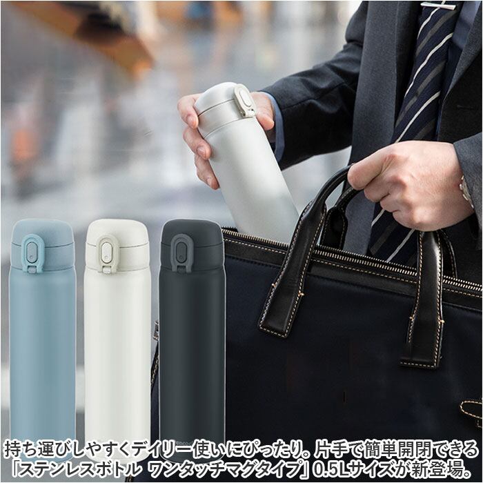 ・持ち運びしやすくデイリー使いにぴったり。片手で簡単開閉できる「ステンレスボトル ワンタッチマグタイプ」0.5Lサイズが新登場。