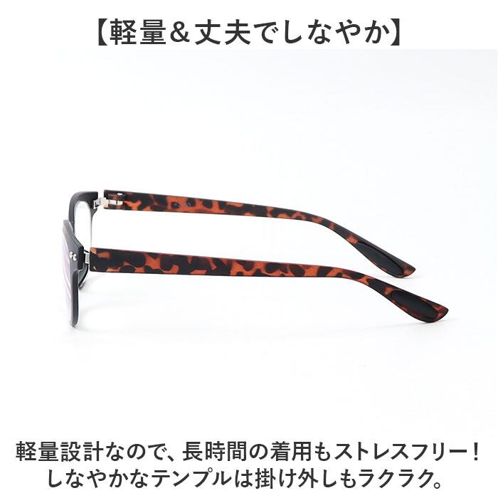 ・軽量設計なので、長時間の着用もストレスフリー!しなやかなテンプルは掛け外しもラクラク。