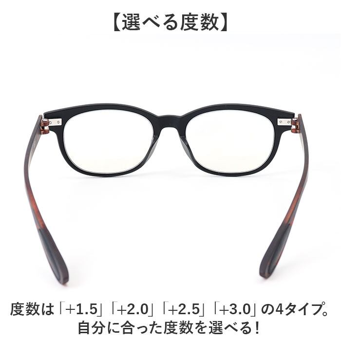 ・度数は「+1.5」「+2.0」「+2.5」「+3.0」の4タイプ。自分に合った度数を選べる!