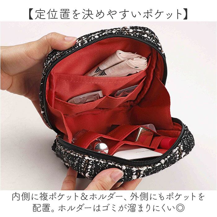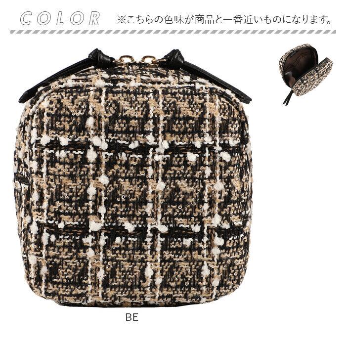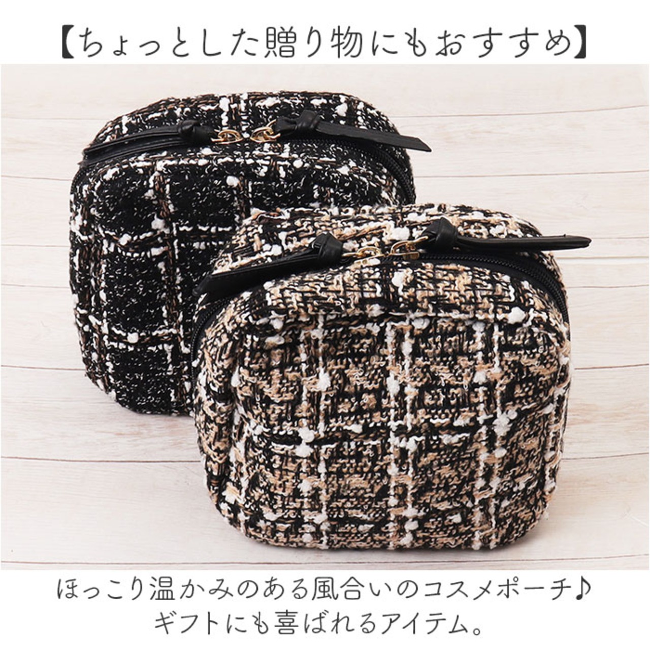 lizdays リズデイズ ポーチ ツイード lz-49808 通販 コスメポーチ メイクポーチ 化粧ポーチ 小物入れ トラベルポーチ バッグインバッグ ツイード調 スクエア 収納 仕分け 自立 かわいい 可愛い ギフト 贈り物