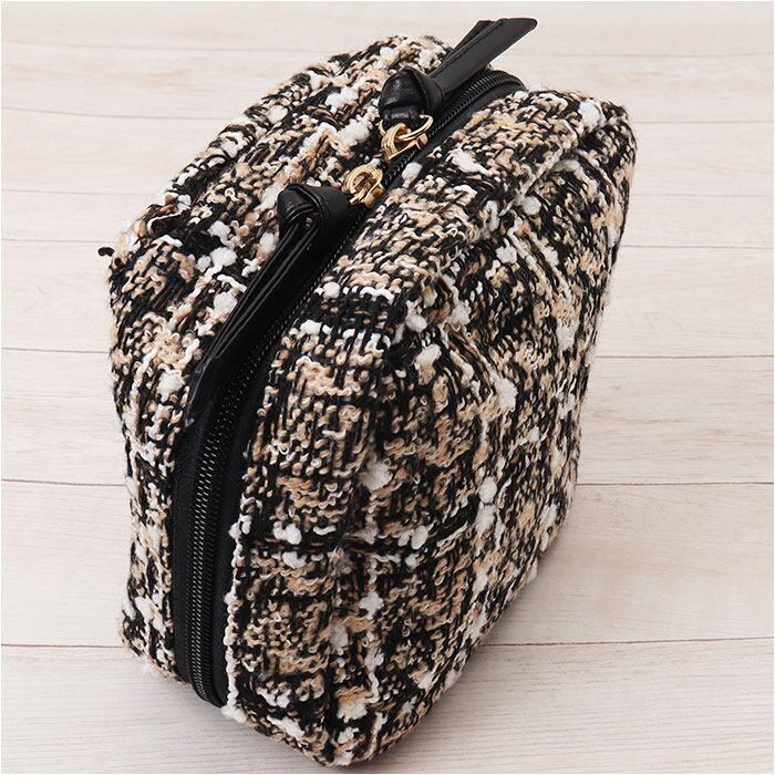 ・自宅でも持ち運び用にも☆すっきり収納できる「LIZDAYS ツイード調コスメポーチ」。