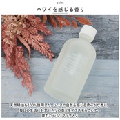 ・天然精油を100%使用した、ハワイの自然を感じる柔らかな香り。毎日の生活にお気に入りの香りをプラスすることで、疲れた心もリラックス♪