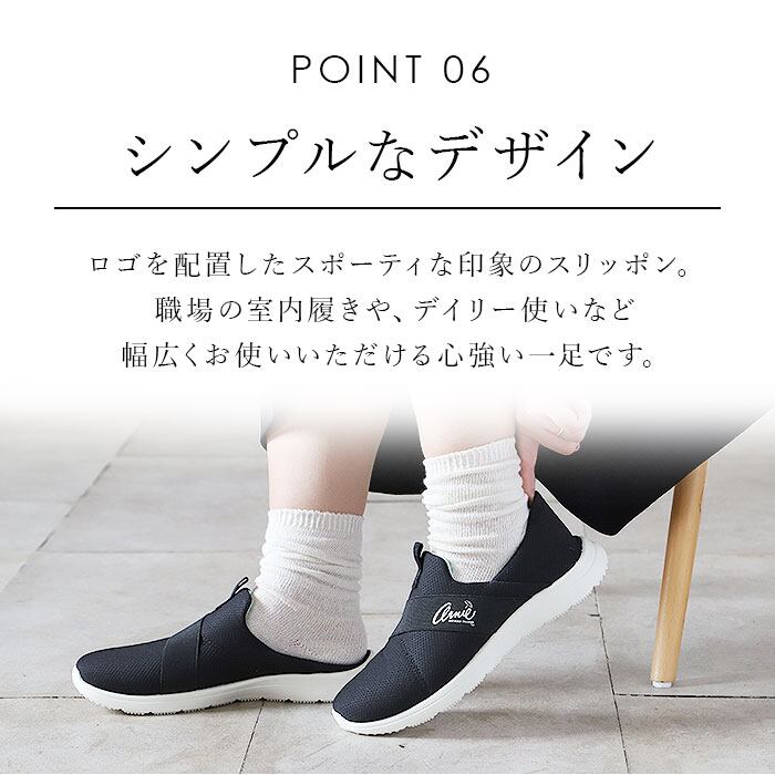 ・適度なクッション性のあるインソールが衝撃を吸収。足にかかる負担を軽減。