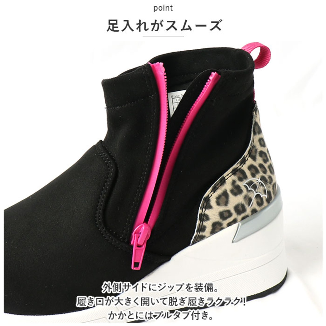 ・ハイカットスニーカーのようなスポーティーなデザインで、晴れの日に履いても違和感なし◎天気が不安定な日や、旅行にも!