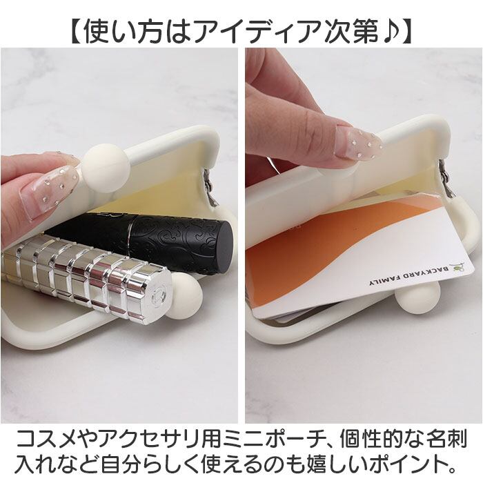 ・ポーチもまぁるいがま口金具も柔らかシリコン素材でコーティング。ぷにぷに触感がクセになる♪