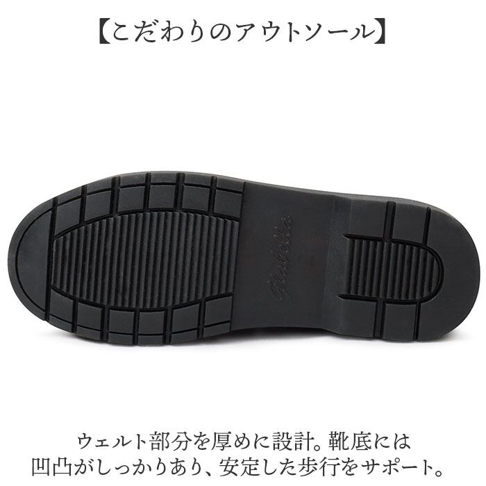 ・ウェルト部分を厚めに設計。靴底には凹凸がしっかりあり、安定した歩行をサポート。