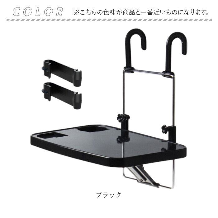 ・付属のフックを使って車のハンドルやヘッドレストに取り付ければ簡単にテーブルが完成!