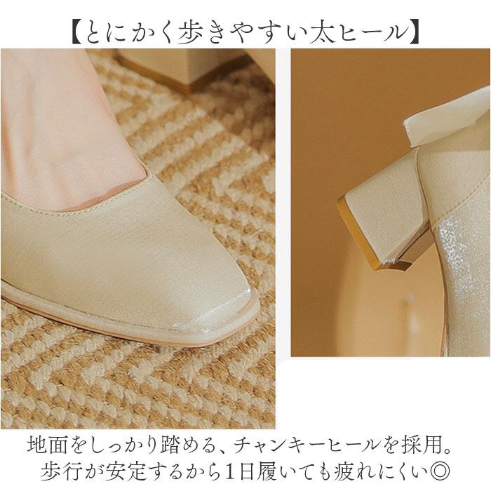 ・地面をしっかり踏める、チャンキーヒールを採用。歩行が安定するから1日履いても疲れにくい◎