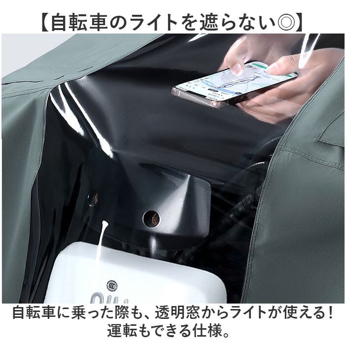 ・フロントには大きな透明窓付き。雨の日でもライトを遮らず、自転車にも対応。