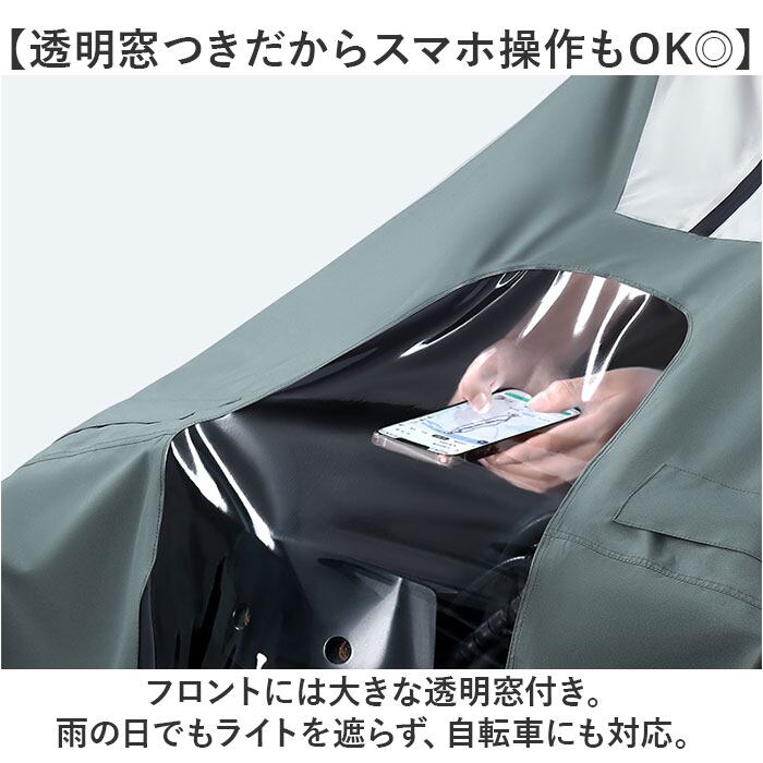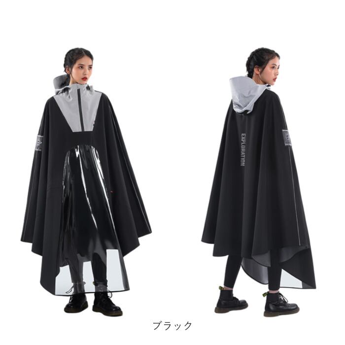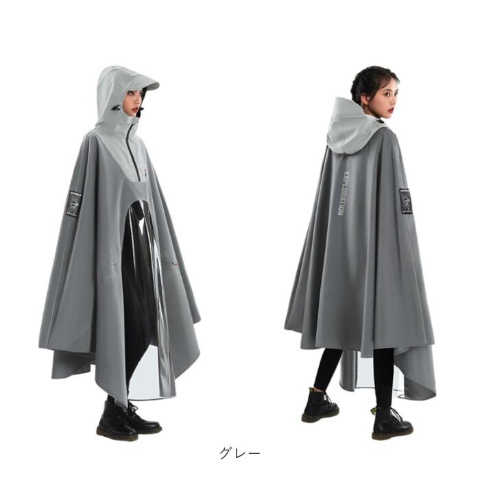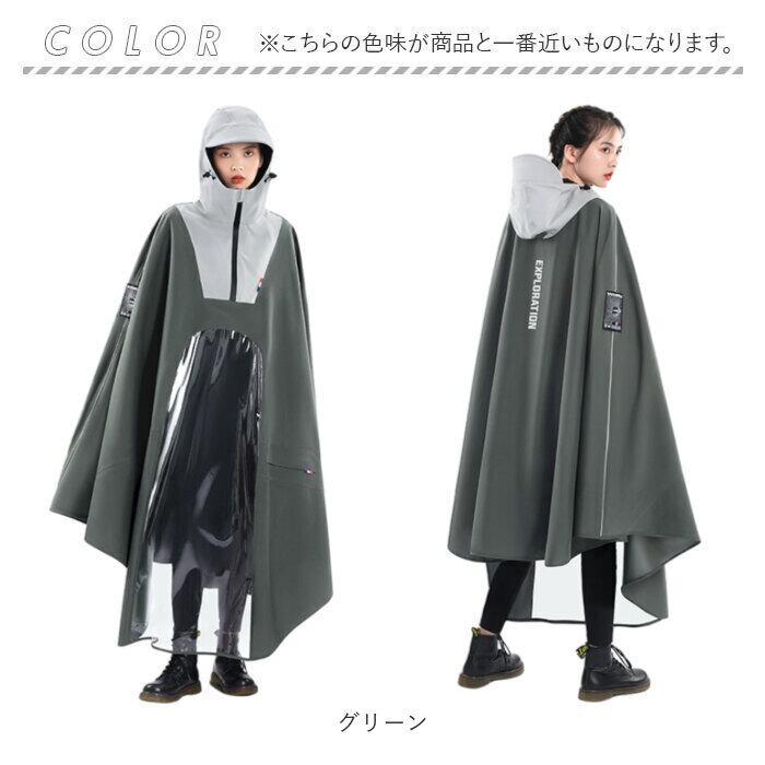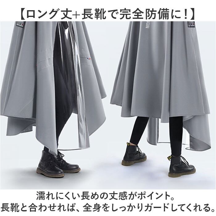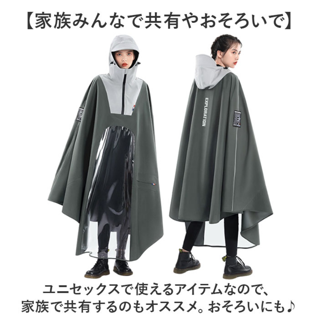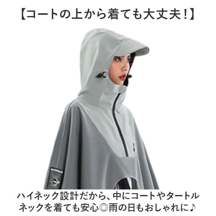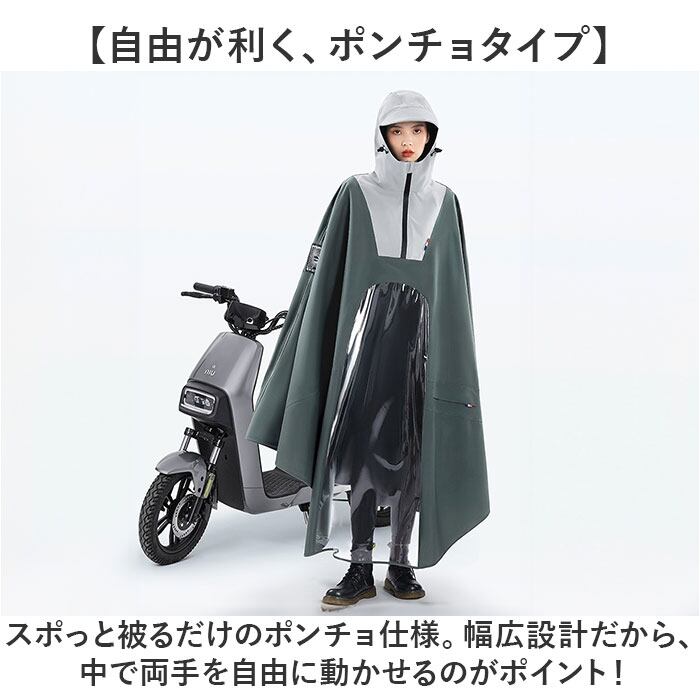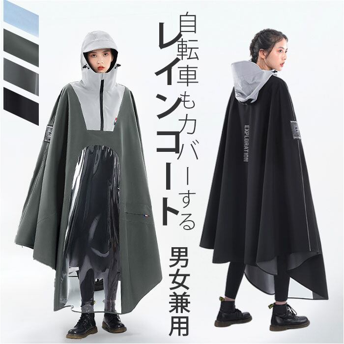 ・着脱しやすいポンチョ型。雨から守って快適に自転車移動できる「レインコート 男女兼用」。