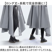 ・濡れにくい長めの丈感がポイント。長靴と合わせれば、全身をしっかりガードしてくれる。
