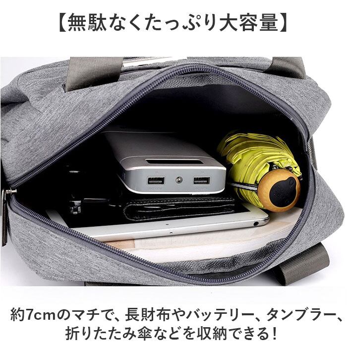 ・約7cmのマチで、長財布やバッテリー、タンブラー、折りたたみ傘などを収納できる!