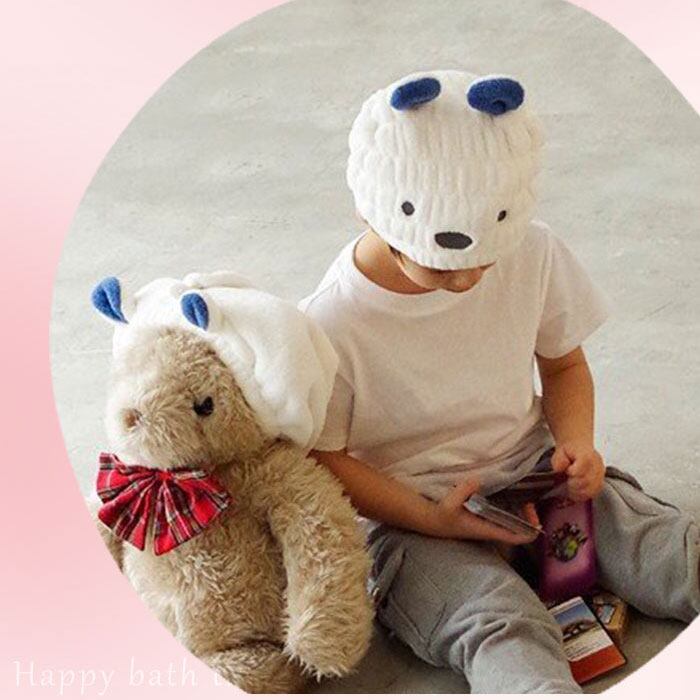 ・思わず笑顔になる、ふわふわアニマル。お風呂上りに便利な、マイクロファイバー製のこども用タオルキャップの2個セット。