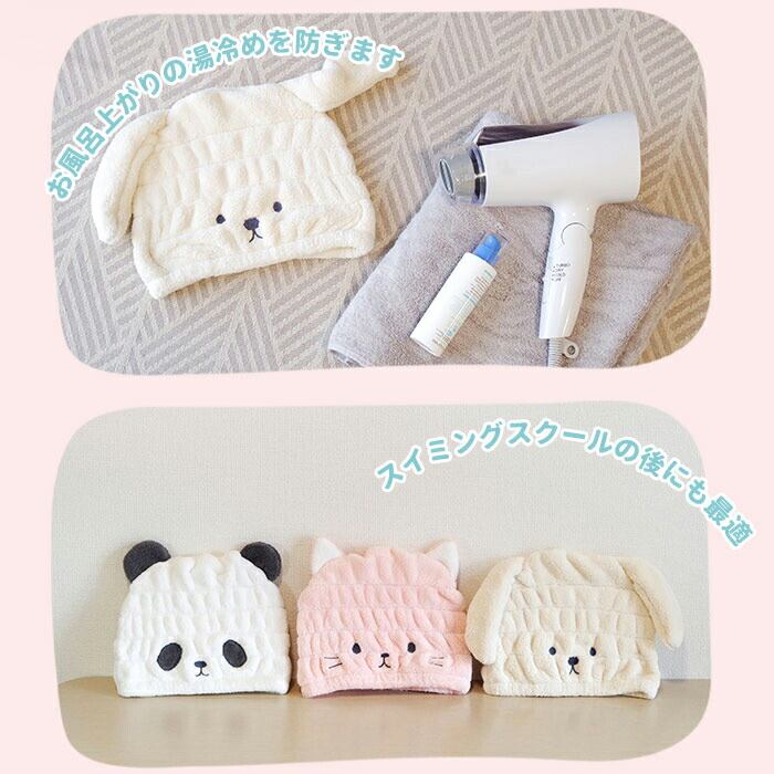 ・お風呂上がりや、プールの後などにかぶるだけで、しっかり髪を守りながら吸水。