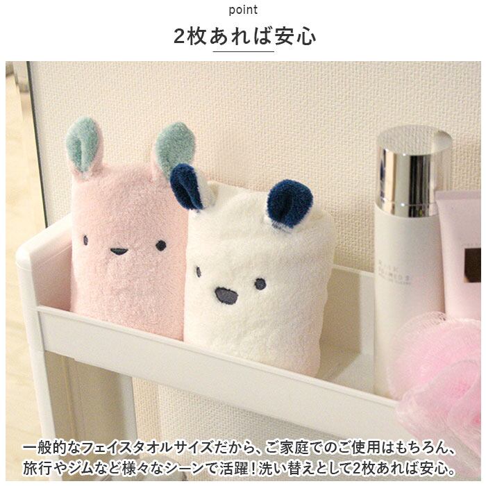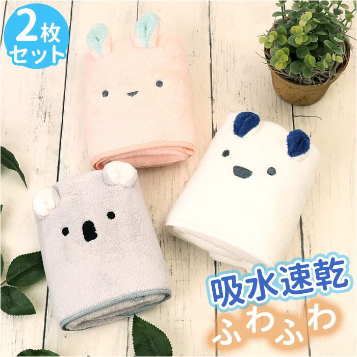 ・触れて・干して・畳んで楽しむ「吸水アニマル フェイスタオル吸水アニマル フェイスタオル 2枚セット」。