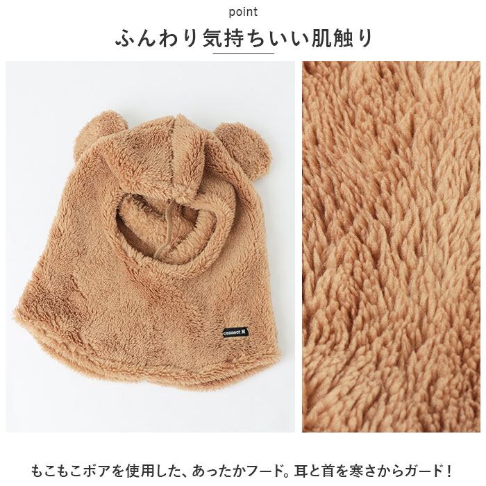 ・もこもこボアを使用した、あったかフード。耳と首を寒さからガード!