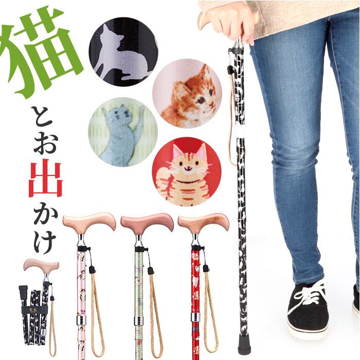 ・可愛いネコさんと楽しくお出かけ♪使いやすく持ち運びにも便利なスリムステッキ「愛杖 折りたたみタイプ」に、プリティキャッツデザインが仲間入り!
