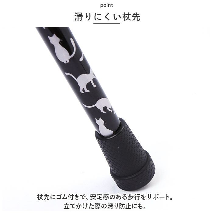 ・ステッキ全面にプリントされた、ネコ柄が印象的。おしゃれに持ち歩けるのが嬉しい!