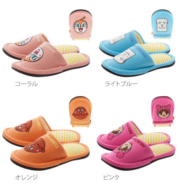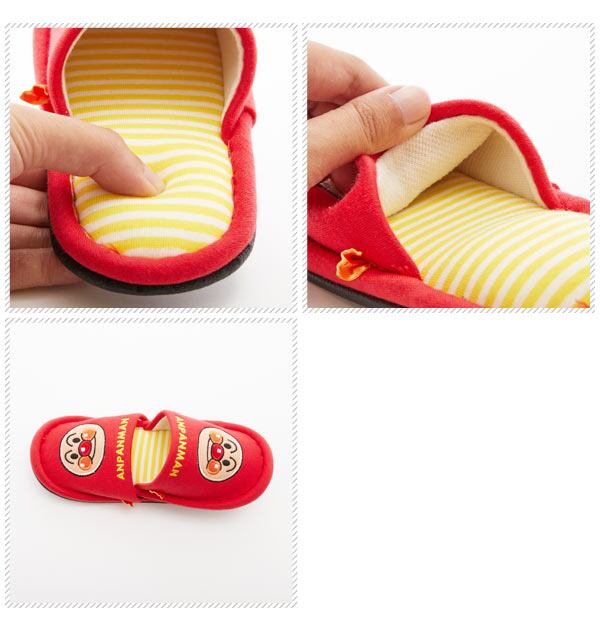 子供達が大好きな、アンパンマンキャラクターのアップリケ付きのかわいいスリッパ。一年中大活躍します!