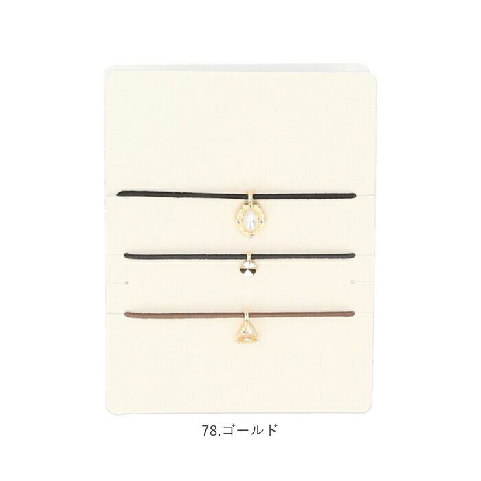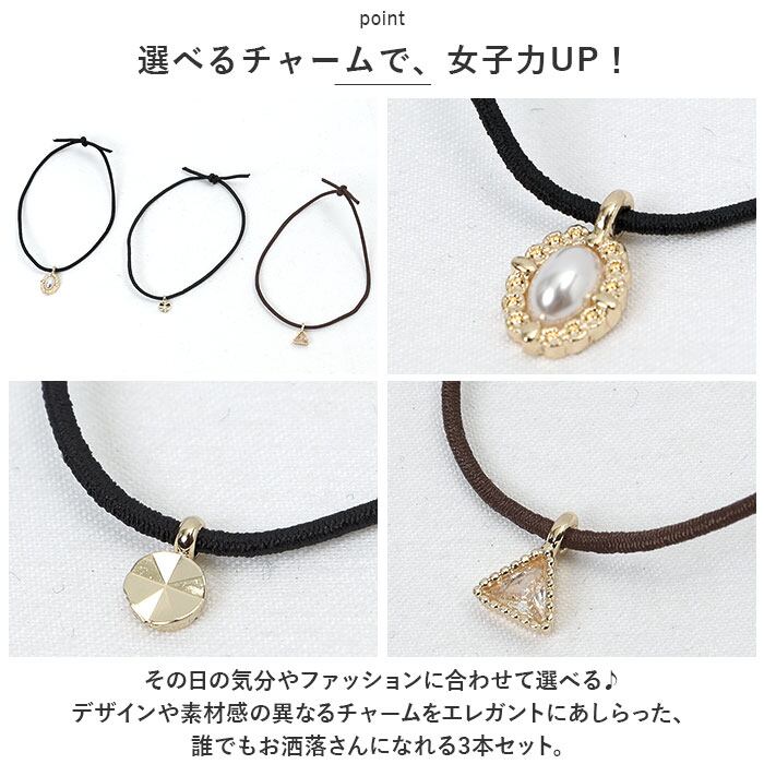 ・その日の気分やファッションに合わせて選べる♪デザインや素材感の異なるチャームをエレガントにあしらった、誰でもお洒落さんになれる3本セット。
