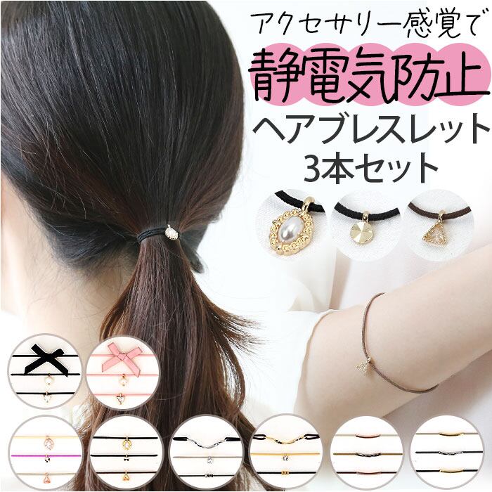 ヘアゴム 静電気軽減 3本セット 通販 ヘアブレスレット antishock 静電気 ブレス ブレスレット 3本 セット ヘアアクセサリー ヘアアクセ 身につけるだけ 静電気対策 髪 手首 おしゃれ シンプル かわいい レディース ファッション小物 ギフト