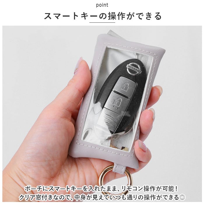 ・ポーチにスマートキーを入れたまま、リモコン操作が可能!クリア窓付きなので、中身が見えていつも通りの操作ができる◎