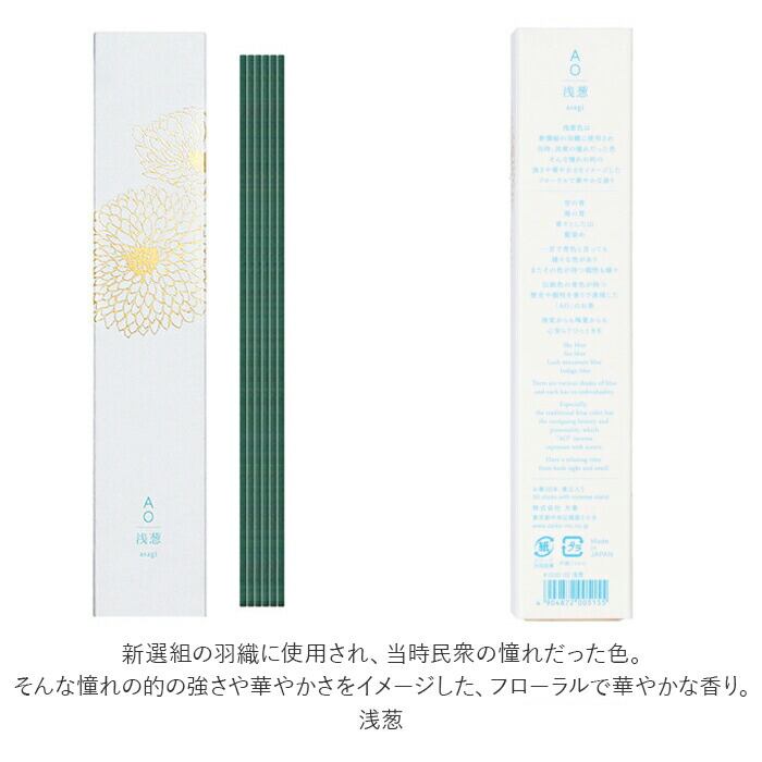 ・縹…ツユクサの花弁から採取され江戸時代は大衆に広く親しまれた色。親しみやすさをイメージした、草木の爽やかな香り。