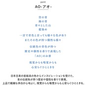 ・日本古来の岩絵具の色からインスピレーションを受けた、青の伝統色が持つ歴史や個性を香りで表現。上品で繊細な余白が心地よく、視覚からも嗅覚からも心安らぐひとときを。