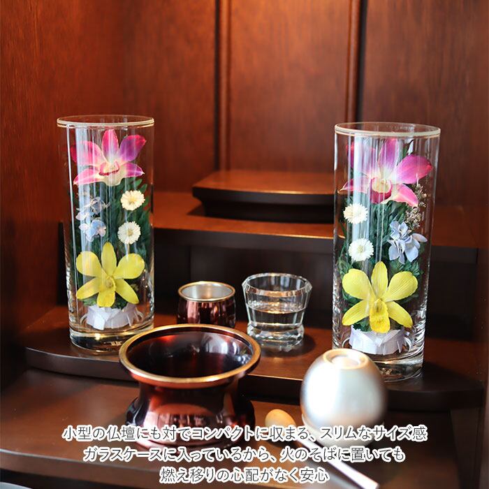 プリザーブドフラワー 仏花 ケース入り 通販 高さ17cm ボトルフラワー グラスフラワー 枯れない花 観賞用 仏花 造花 お供え花 お盆 お彼岸 お正月 法事 法要 供養 ギフト