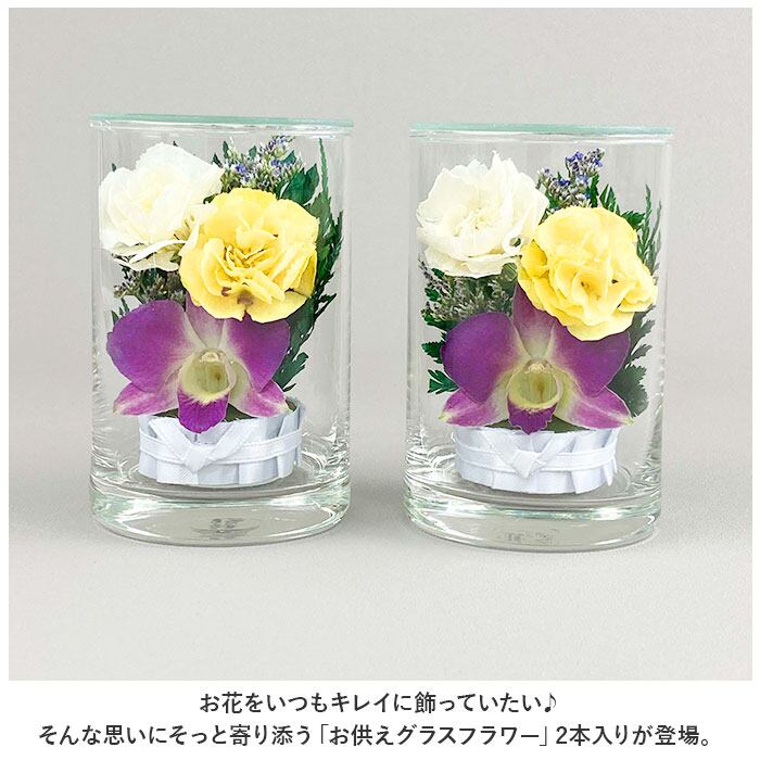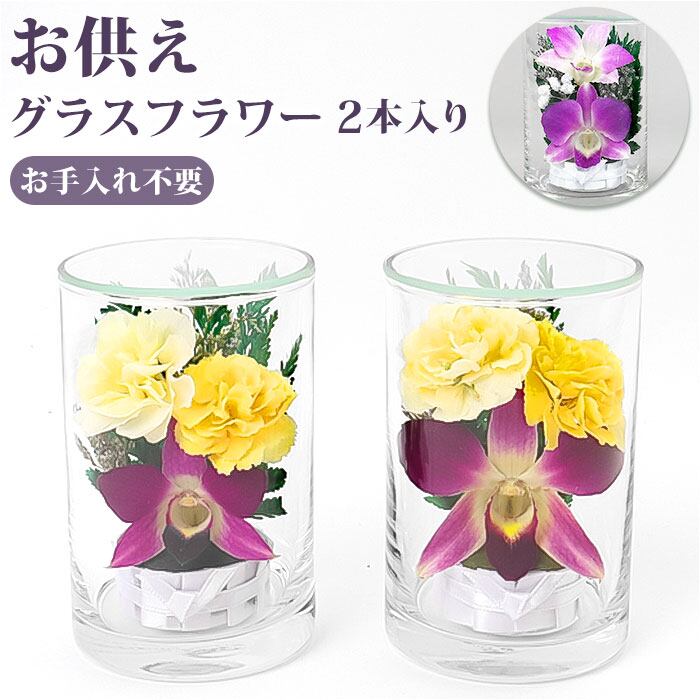 お供え 花 一対 プリザーブドフラワー 通販 仏花 ガラスボトル グラスフラワー メモリアル ボトルフラワー フラワーアレンジメント 仏壇用 お仏壇 枯れない花 贈り物 お彼岸 法事 法要 お盆 一周忌 お花 フラワーギフト フラワー インテリア 雑貨