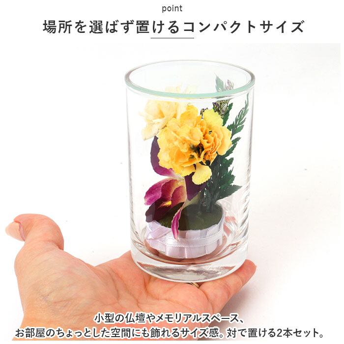 ・小型の仏壇やメモリアルスペース、お部屋のちょっとした空間にも飾れるサイズ感。対で置ける2本セット。