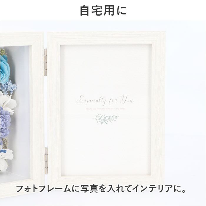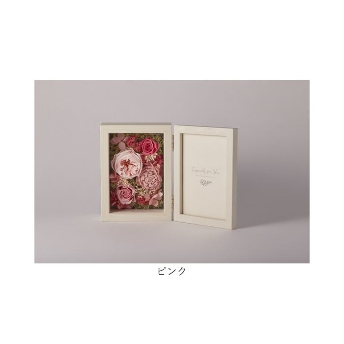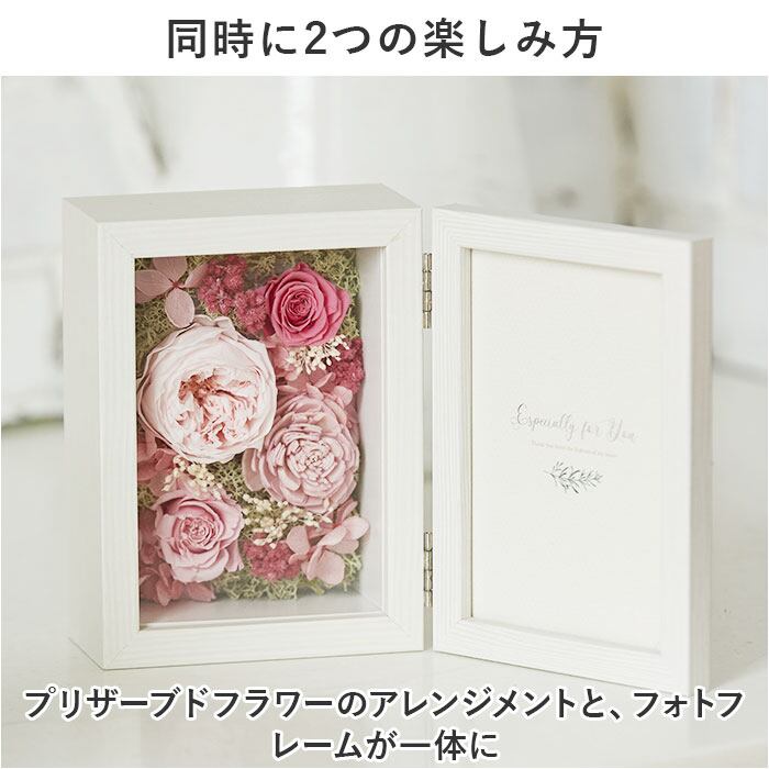 ・プリザーブドフラワーのアレンジメントと、フォトフレームが一体に。