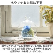 ・透明なガラスドームに覆われているため、お花がホコリで汚れてしまう心配がなく、水やりや水換えの必要がないのも嬉しいポイント。