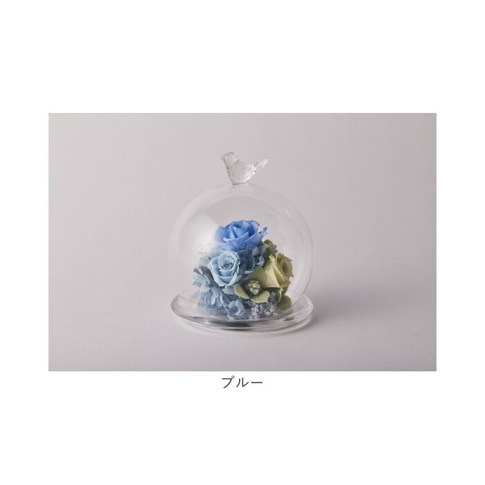 ・情熱的で可憐なピンク、温かみのあるオレンジに、清々しいブルー・・・。四季をイメージした華やか色合いのバラやアジサイの花びらを、生花のみずみずしい質感はそのままにドームの中にギュッと凝縮。